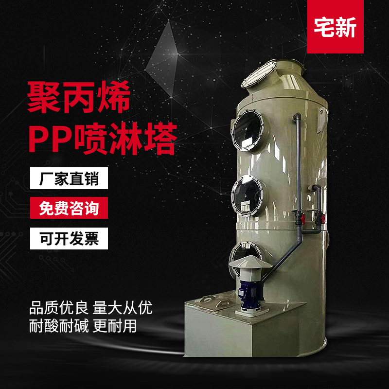 需要注意的是,PP噴淋塔的具體設計和選型應根據實際情況進行,例如廢氣流量、污染物特性等。在安裝和使用PP噴淋塔時,請嚴格按照相關規范和標準進行操作,以確保其有效性和安全性。